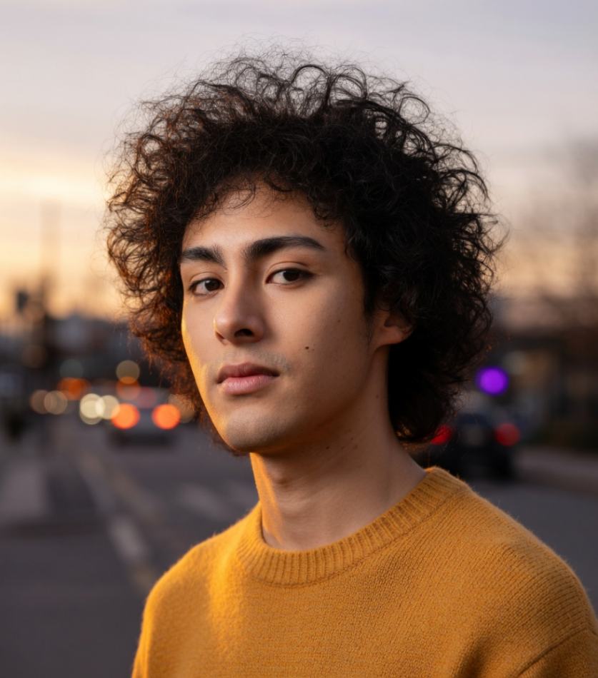 Curls are your best friend here. The natural volume of curly hair draws the eyes upward. A tight fade on the sides keeps the silhouette clean, while the curls on top add height and personality.