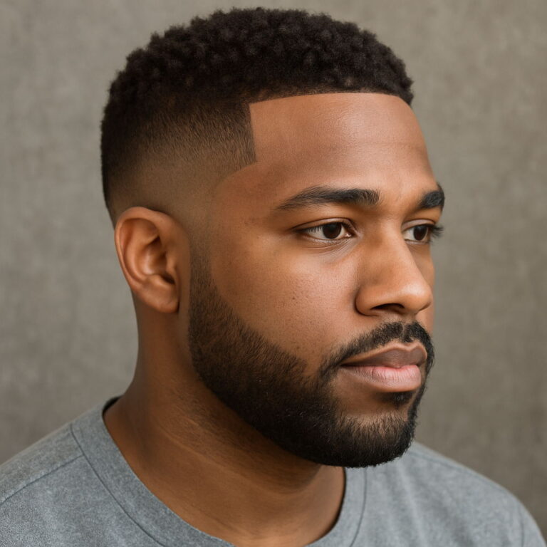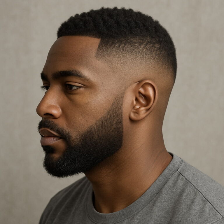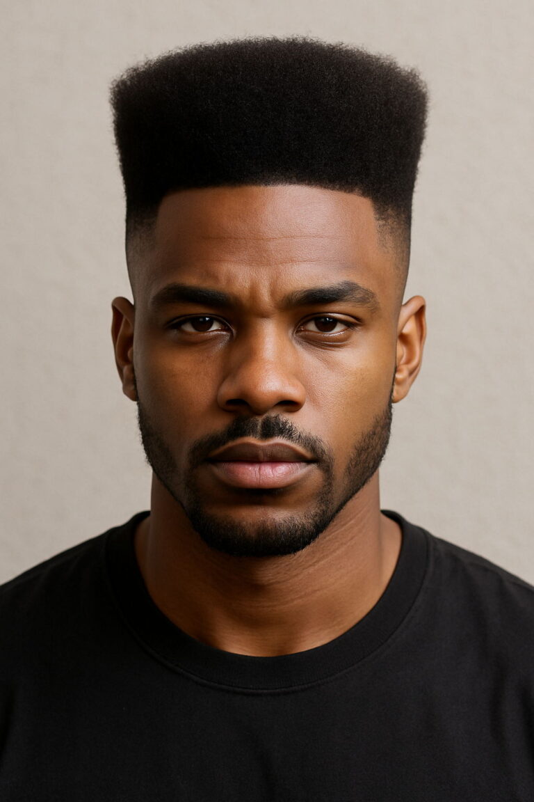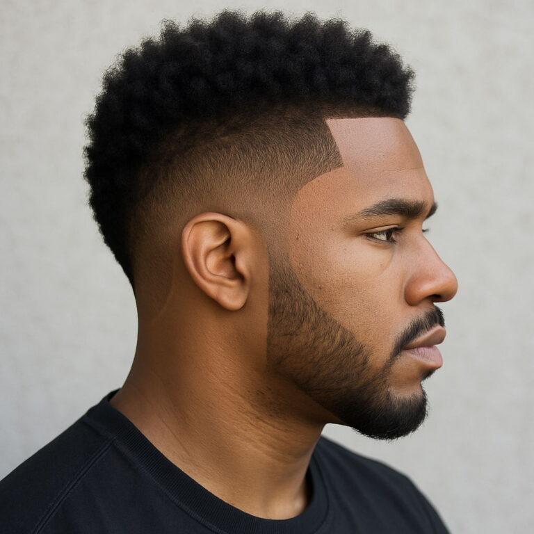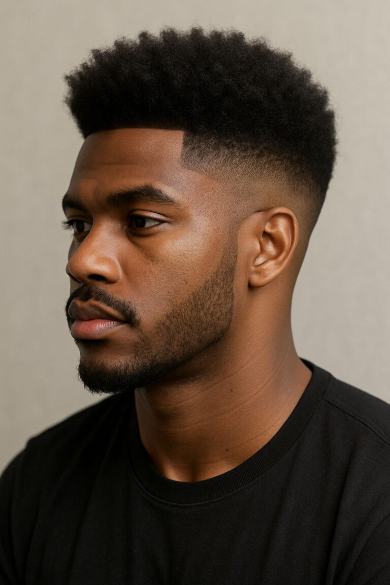The high-top fade remains a standout choice for Black men, echoing both individuality and tradition. Often compared to the flat top haircut, this look features a precisely sculpted crown with sharply faded sides — a favorite in modern barber shop styles. Typically, the hair on top measures 4 to 6 inches, flaring outward for a bold yet clean finish. Adding a high skin fade or temp fade helps enhance the height, while a shorter, more parallel top lends a refined twist for professionals seeking a mature aesthetic.
