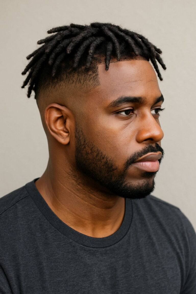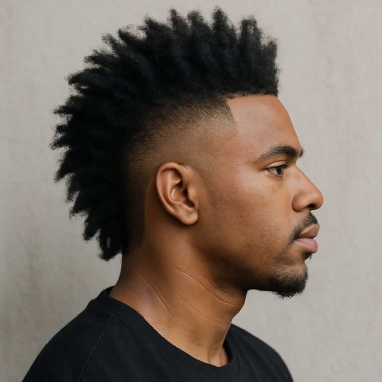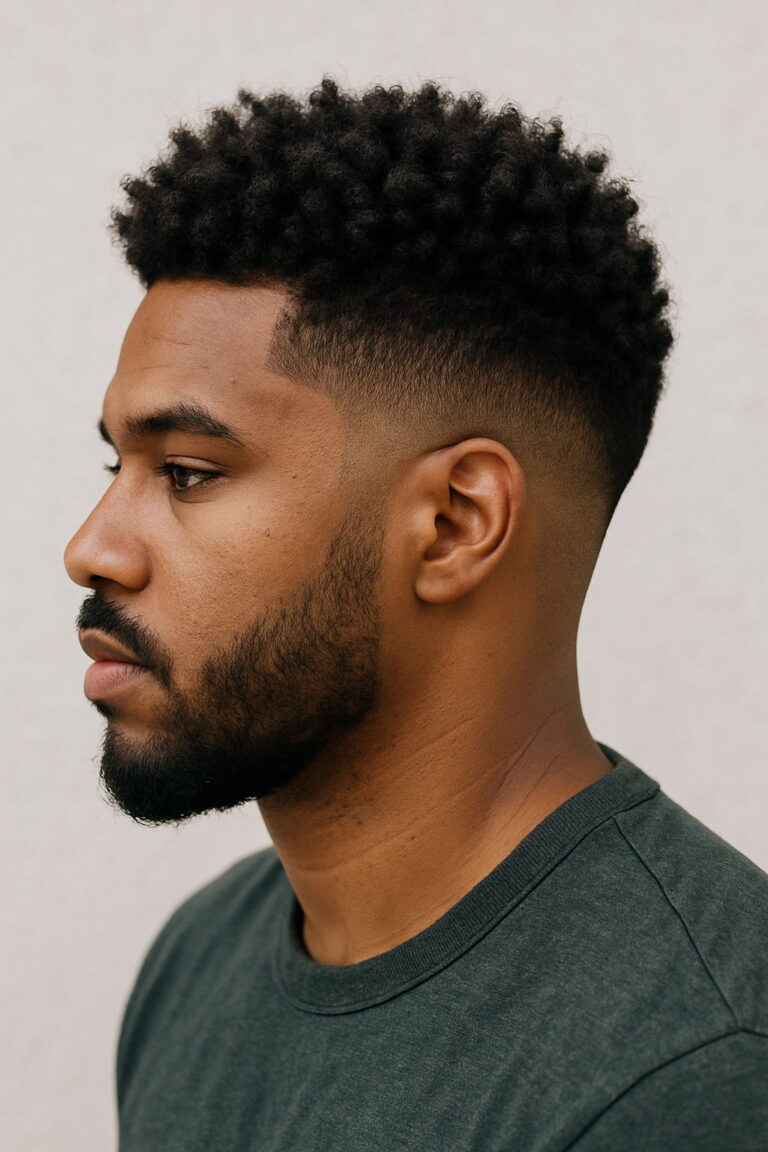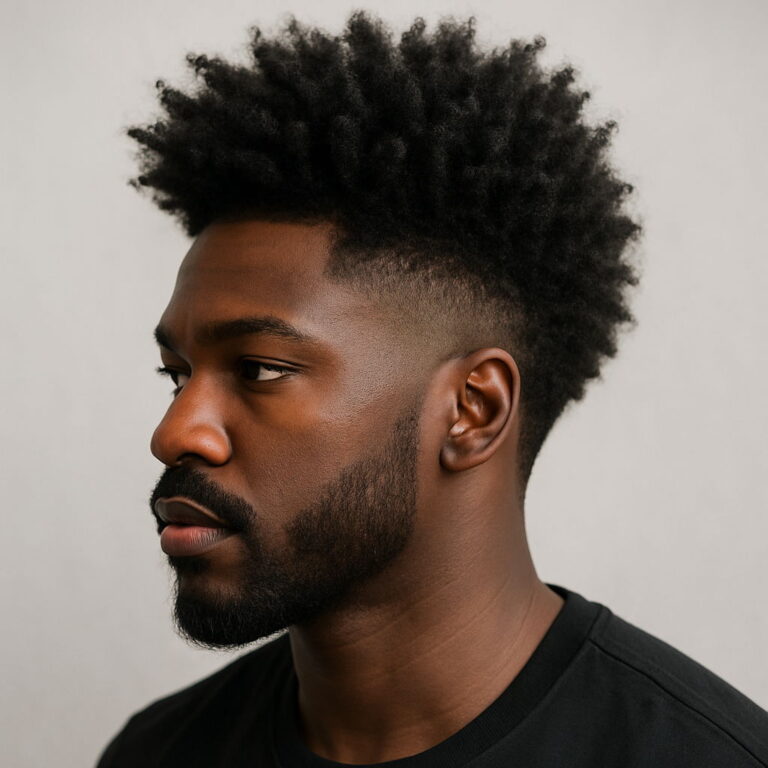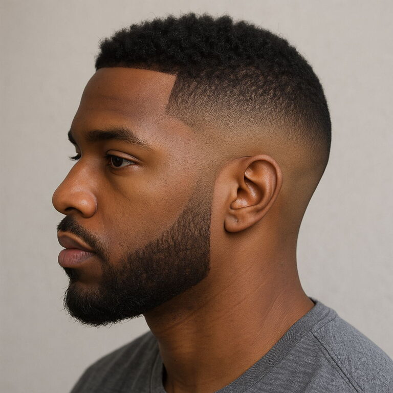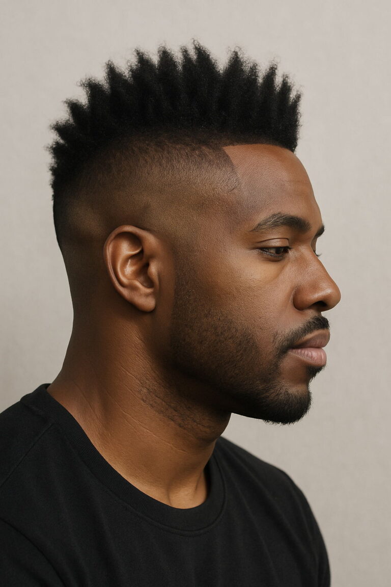 The high-top fade remains a standout choice for Black men, echoing both individuality and tradition. Often compared to the flat top haircut, this look features a precisely sculpted crown with sharply faded sides — a favorite in modern barber shop styles. Typically, the hair on top measures 4 to 6 inches, flaring outward for a bold yet clean finish. Adding a high skin fade or temp fade helps enhance the height, while a shorter, more parallel top lends a refined twist for professionals seeking a mature aesthetic.