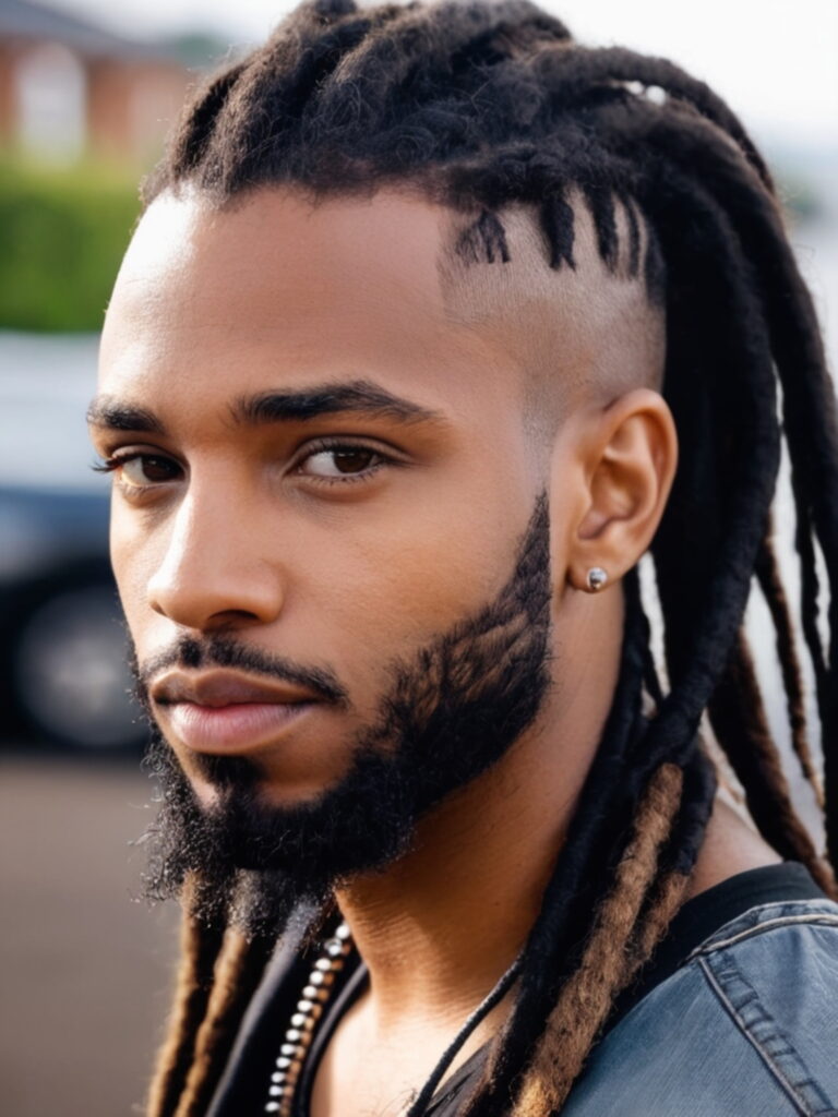 A dread fade stands out as a unique style, marrying bold, twisted locs with sides cut down for sharp contrast. Long dreads rest atop, pulled back, giving way to faded edges. This approach, especially paired with a burst fade, draws attention instantly. Others might choose a mid drop fade — just as impactful, but with a different edge. Add a crisp line-up around the hairline and beard, and the look commands attention without effort.