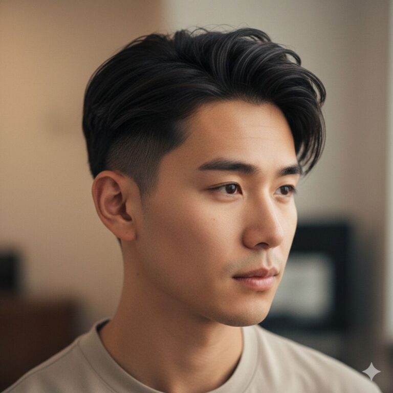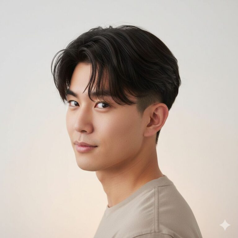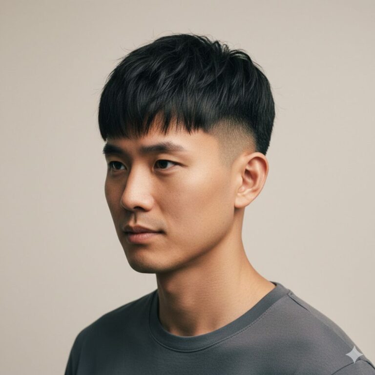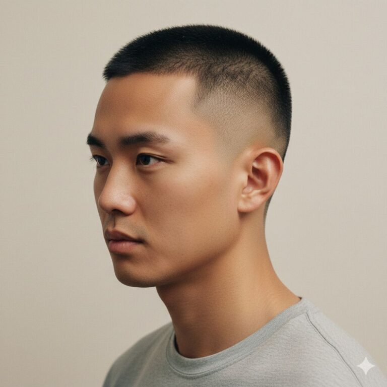 The buzz cut fade is a classic style that pairs clean, military-inspired lines with a masculine edge, creating a bold look that suits Asian hair perfectly. It’s low-maintenance, confident, and versatile – ideal for anyone who wants a sharp appearance without fussing over daily styling. The cropped top emphasizes facial features, while the gradual fade along the sides softens the overall impression, keeping it balanced. A matte moisturizer keeps the scalp healthy, and simple, regular trims are all you need to maintain the crisp fade.