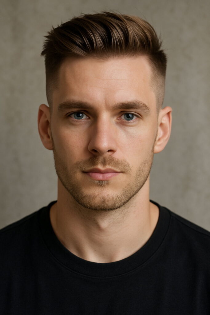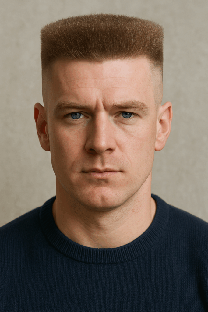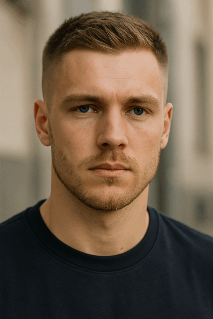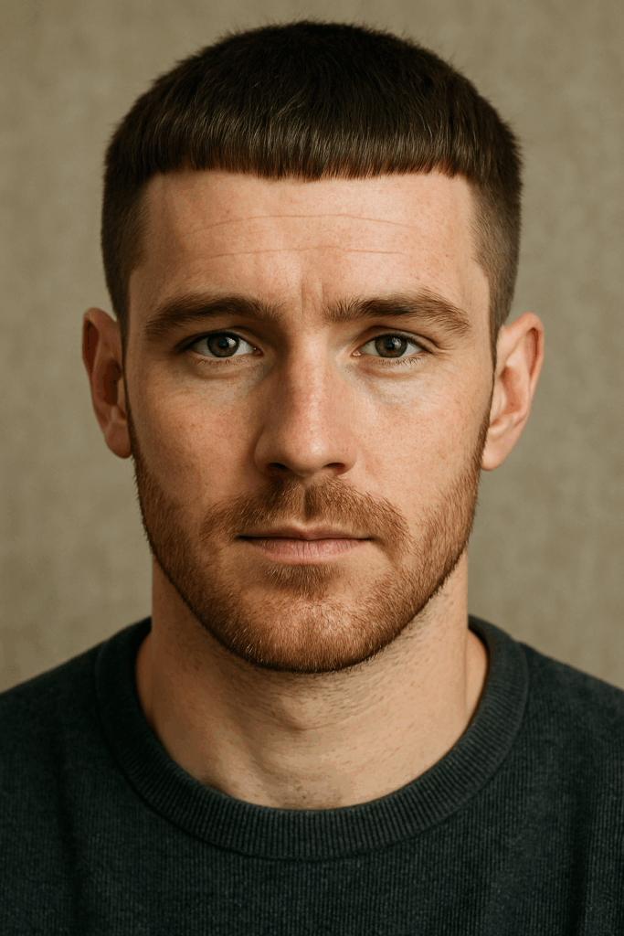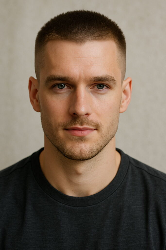 A buzz cut trims the hair short with clippers, giving a neat, sharp look that’s easy to manage. No styling products. No fuss. Just clean lines. It suits oval, square, and diamond-shaped faces well. For men noticing thinner patches, it reduces the contrast between hair and scalp. Low effort, high impact. Quiet, but confident. That’s the strength of this cut.