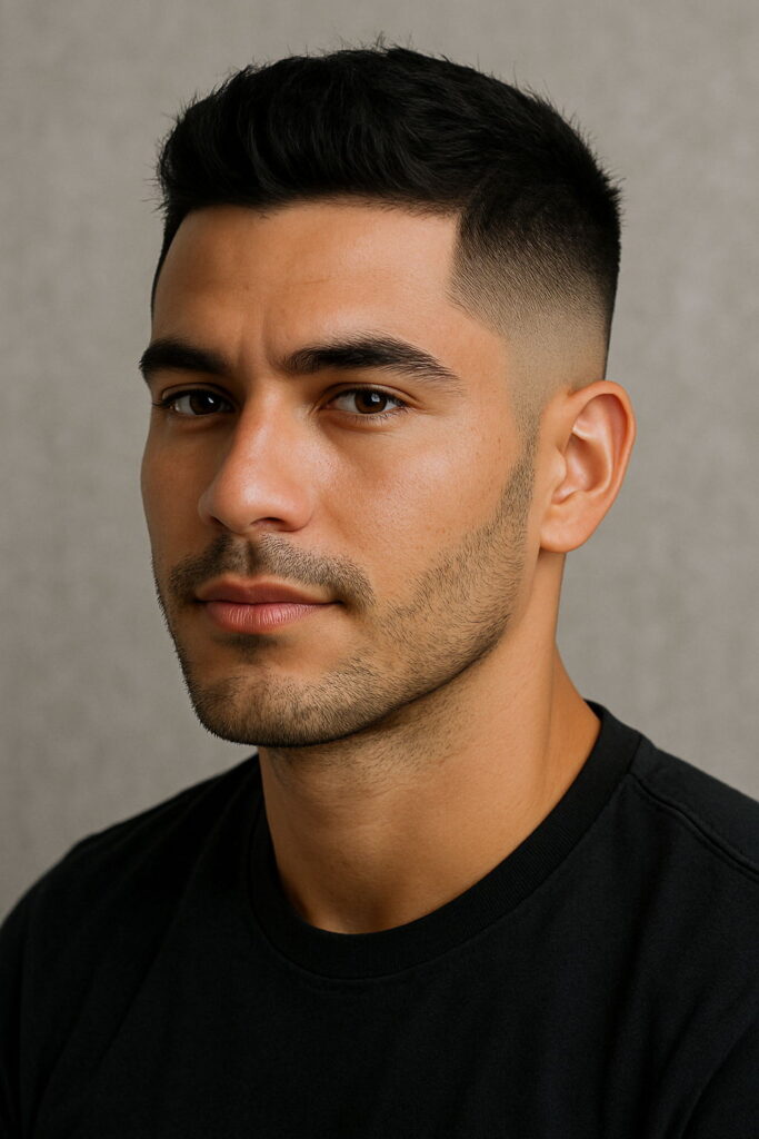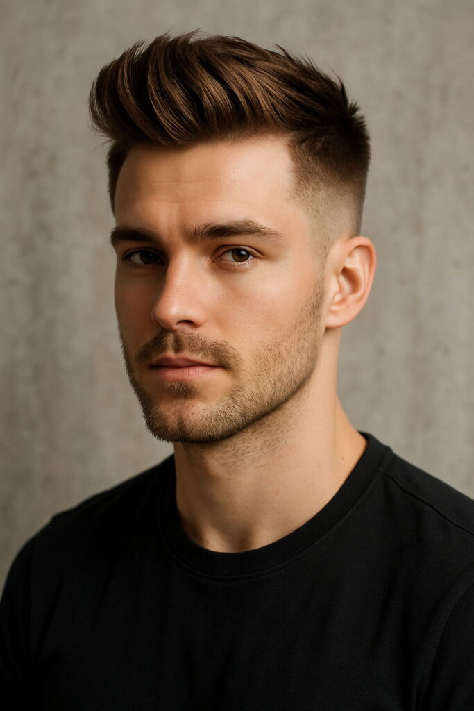 A classic with a twist. This cut offers lifted volume up front with neat, short sides. Perfect for thick hair, it’s a favorite in barbershop haircut styles for men who want a balance between bold and clean. It’s one of those classic haircut styles for men that never fades out.