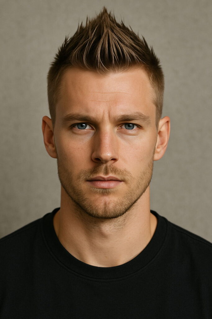 Short on the sides, tall through the middle — the faux hawk doesn’t play it safe. Inspired by punk roots but shaped for modern wear, it builds a sharp ridge up top while keeping things tight on the edges. Great for oval or square faces, this style adds lift and draws focus upward. Whether spiked or swept, it’s made to turn heads without going full mohawk. Bold, but easy to dial up or down.
