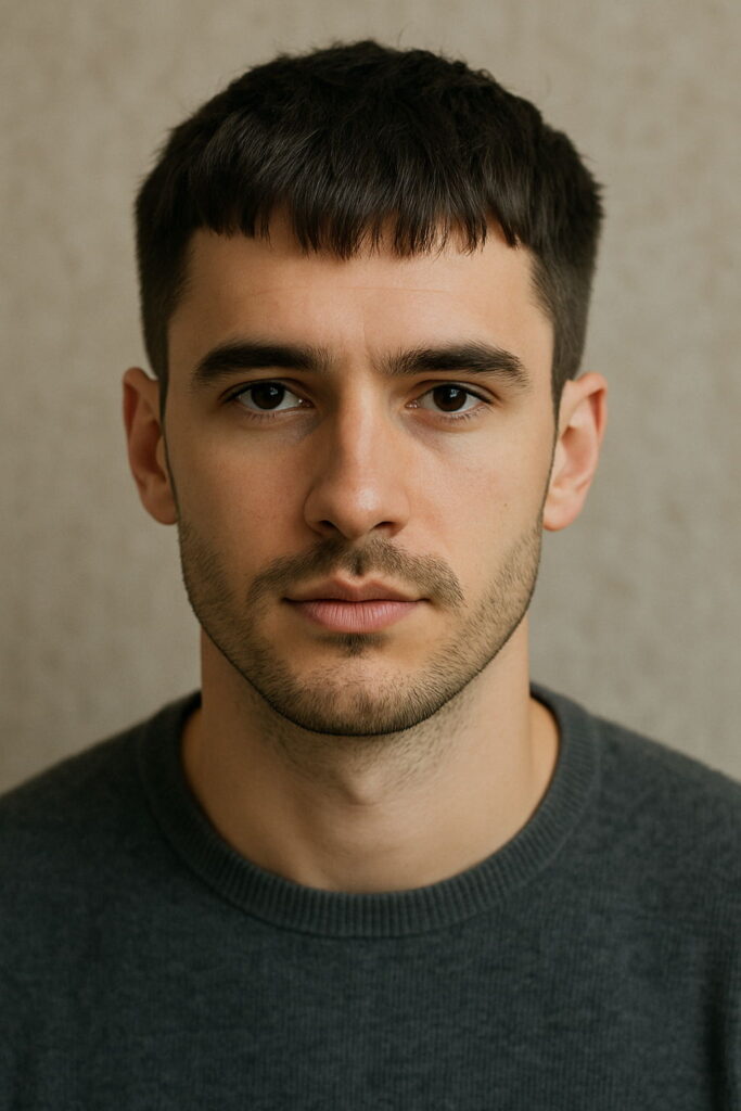Short with a forward fringe, this style has been around for centuries but still feels modern. A strong choice in the types of male hairstyles category, especially for men looking for defined lines and low maintenance.