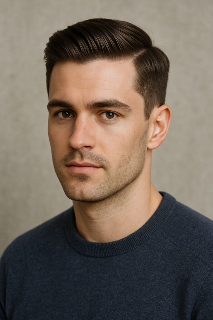 Long on top, short at the sides — clean but flexible. This cut’s been around for generations and still finds its place everywhere, from weekend hangouts to weddings. It suits thick, thin, wavy, or straight hair. Works on just about any face, though it shines on oval, square, and heart-shaped ones. Sharp without trying too hard.