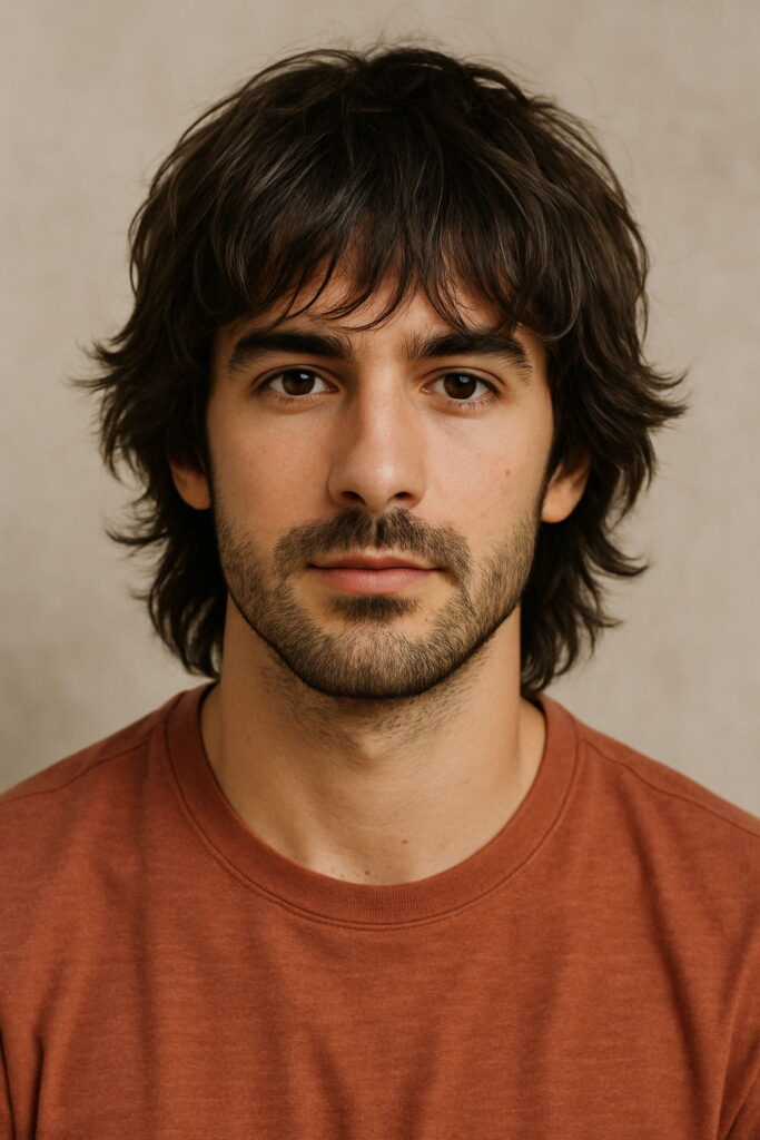 The shag keeps things loose and layered. Medium in length, the cut uses uneven chops to build texture without looking messy. It leans into movement — controlled but never stiff. Great for oval or rectangular faces, especially when the hair has some wave. The layers bring lift, making it look lived-in without feeling sloppy. A solid choice for anyone not into perfect lines.