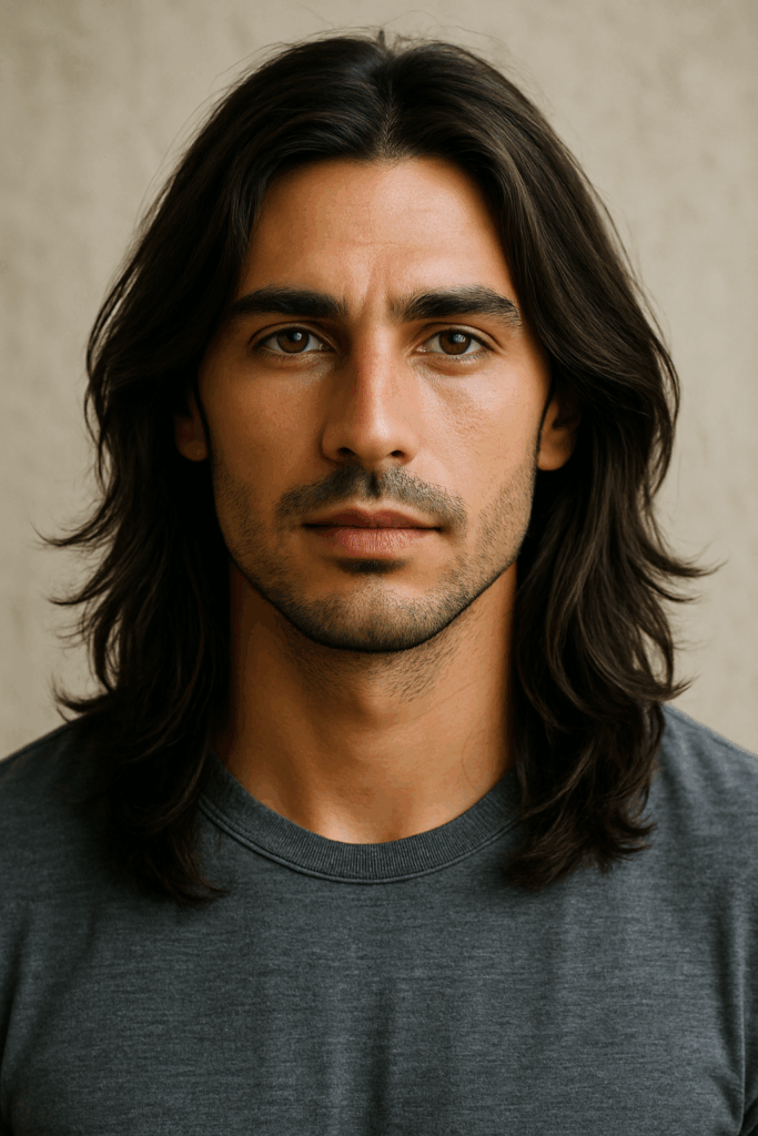 Soft middle parting with fringe falling to either side. This has become one of the go-to stylish male hairstyles for guys with medium to long hair. It adds movement without requiring constant styling.
