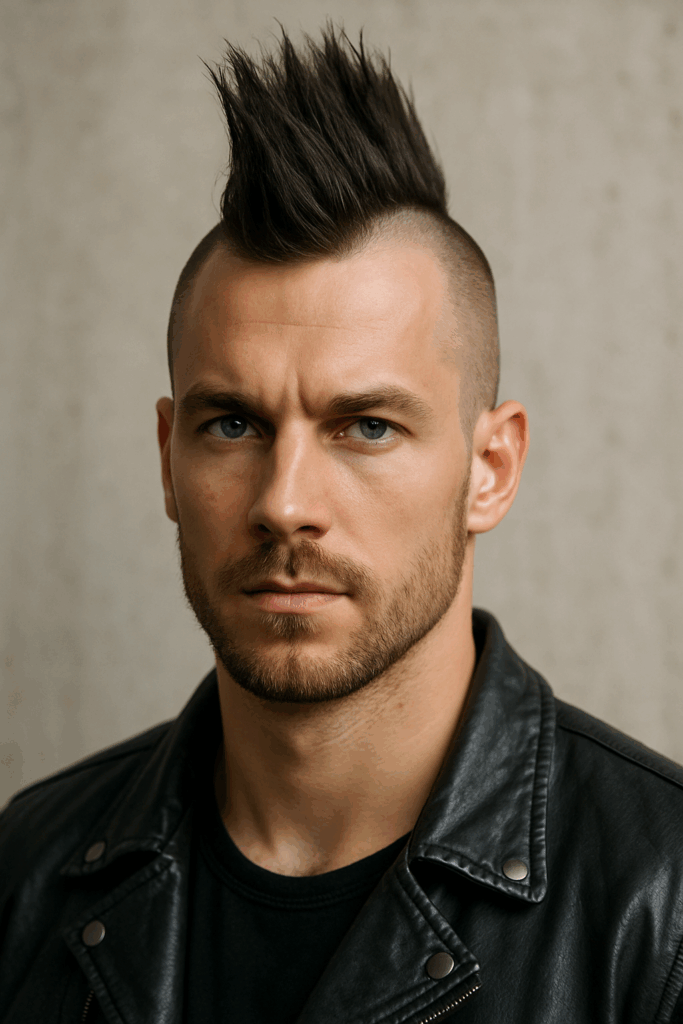 A bold pick among new styles of haircuts for men, this cut features a strip of longer hair with shaved or tight sides. It’s not for everyone, but for those willing to make a statement, it tops the list of stylish male hairstyles.