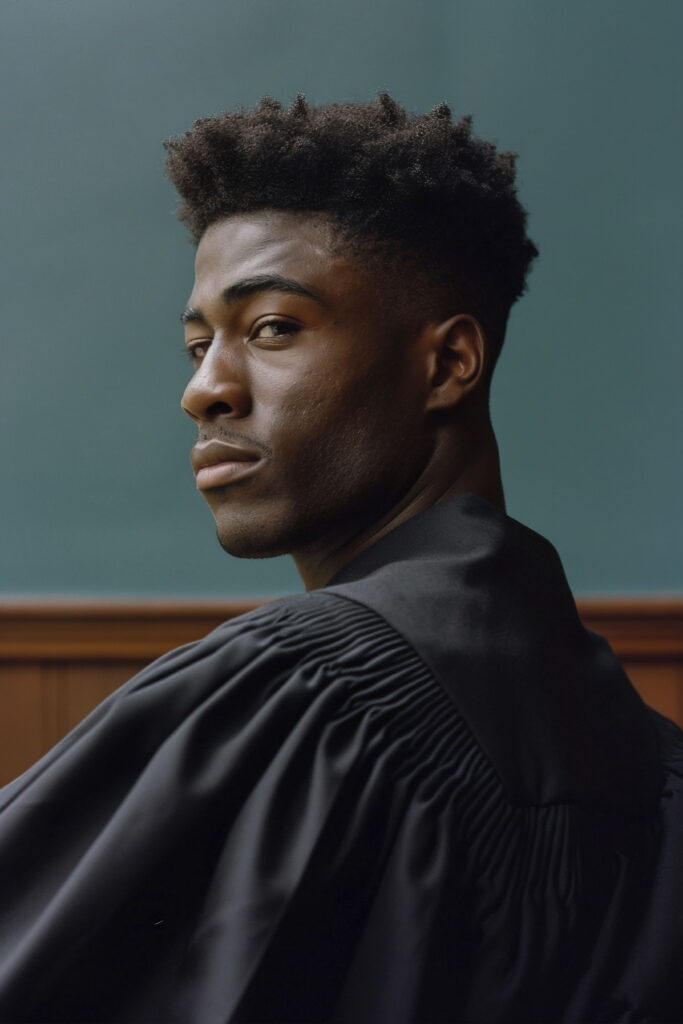 A mid-length textured afro brings volume and shape, working especially well with defined curls. The afro fade haircut for men keeps things sharp, fading tight at the sides and back for contrast. An edge up hairstyle with natural curls lines up the forehead and temples, adding structure. Styling? Just curl cream and fingers — quick, clean, and full of character.