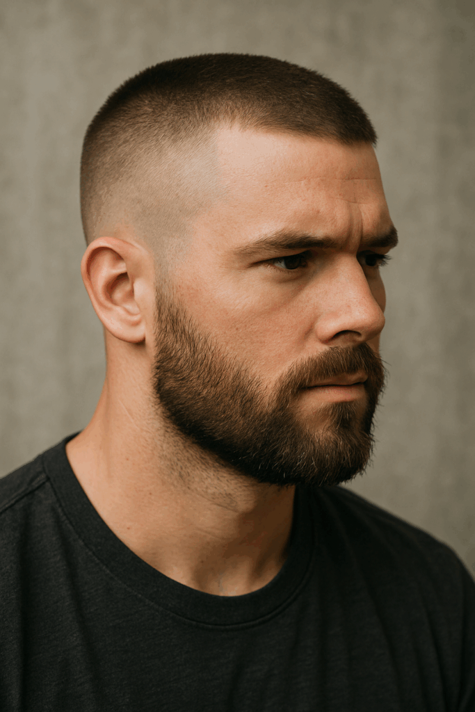 Few cuts keep things as clean and simple as the buzz cut. Hair stays short all over, clipped evenly, while the faded sides and back give it just enough structure to avoid looking too raw. It’s a go-to for a reason — works with nearly every face shape, doesn’t care what kind of hair you’ve got, and always feels like a confident move.