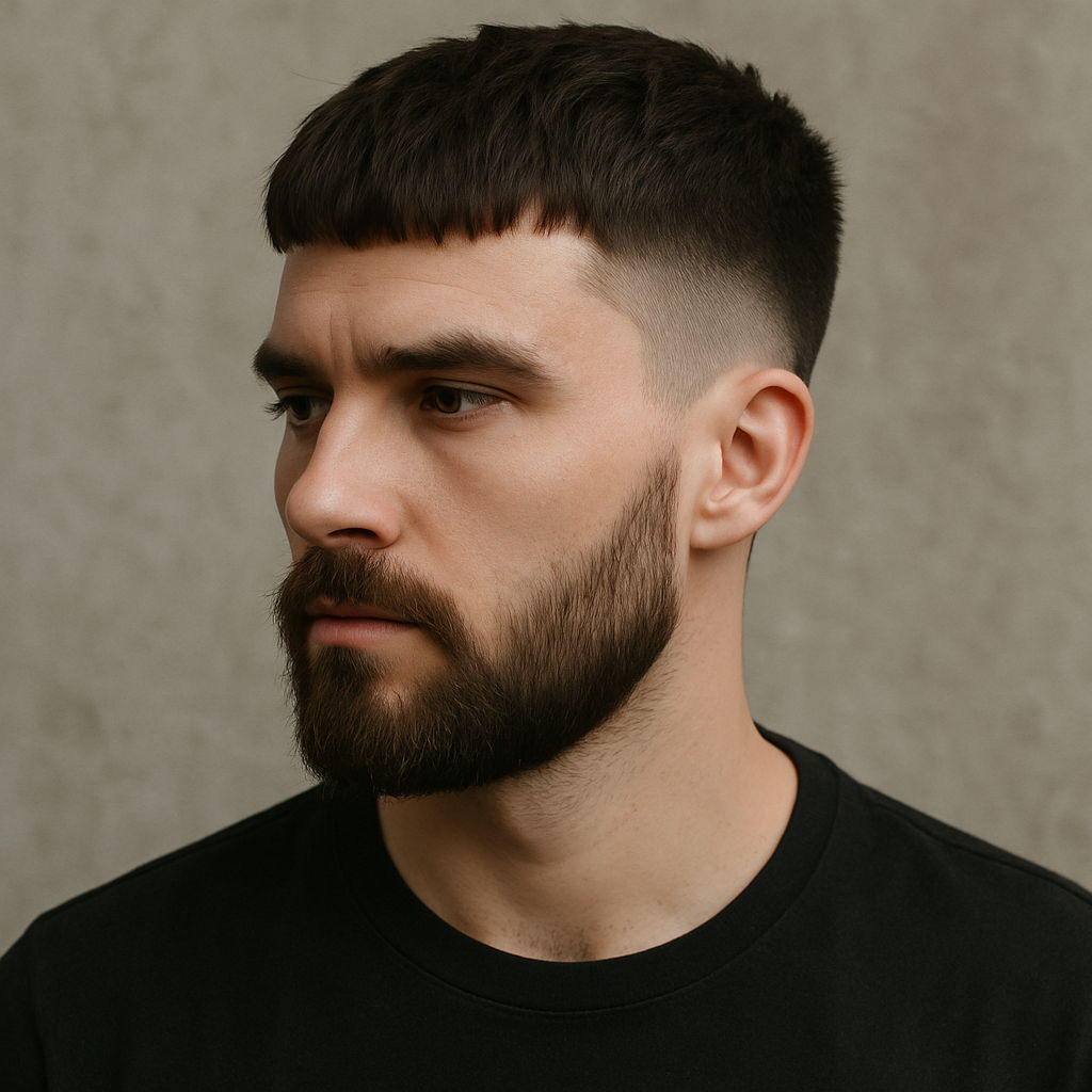 Textured Crew Cut Fade with Blunt Fringe