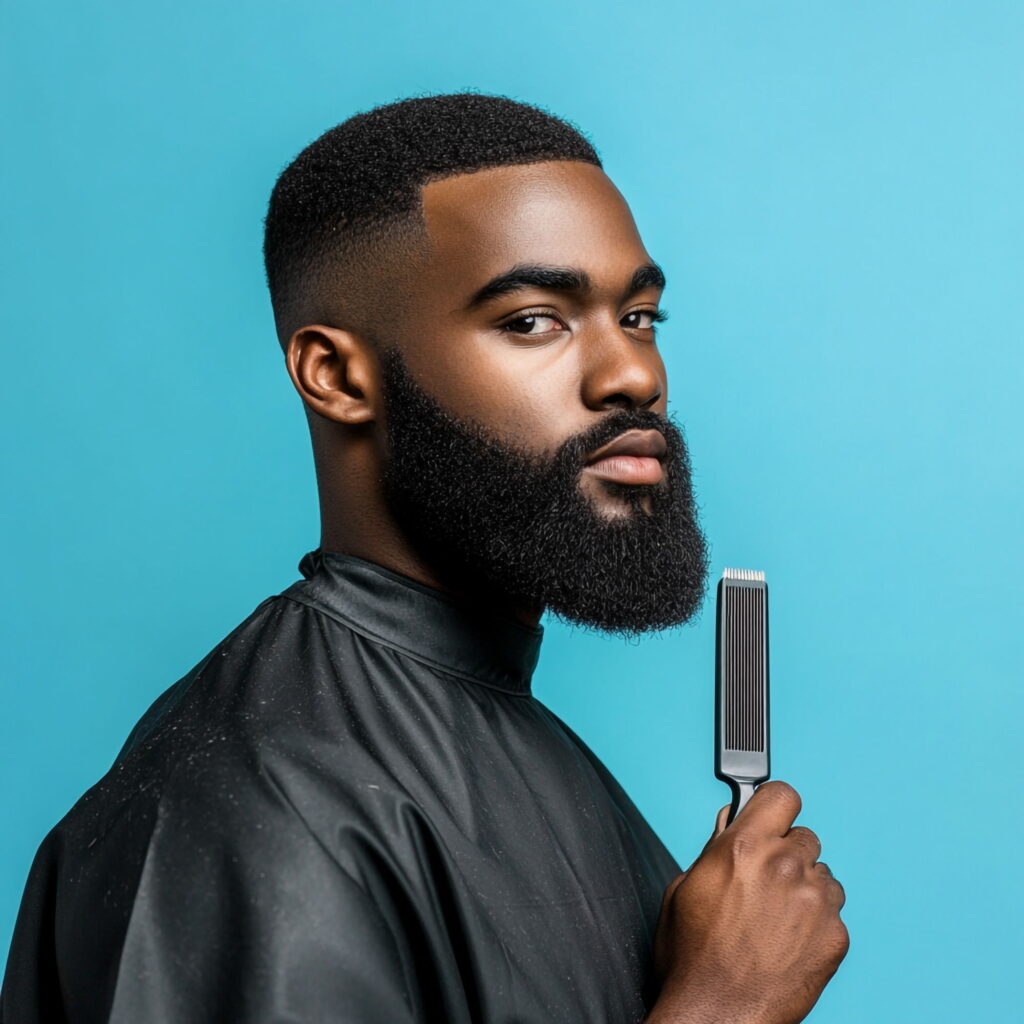 The temp fade haircut with Line-Up for Black men delivers sharp contrast without losing that natural flow. Hair is kept short and wavy, which makes maintenance easy while still showing texture. The line up haircut with waves pairs perfectly with the clean shape at the front. On the sides, a low skin fade with edge up carves out a polished frame. With a stubble beard added for balance, this look lands somewhere between smooth and rugged — ideal for those who want style without effort.